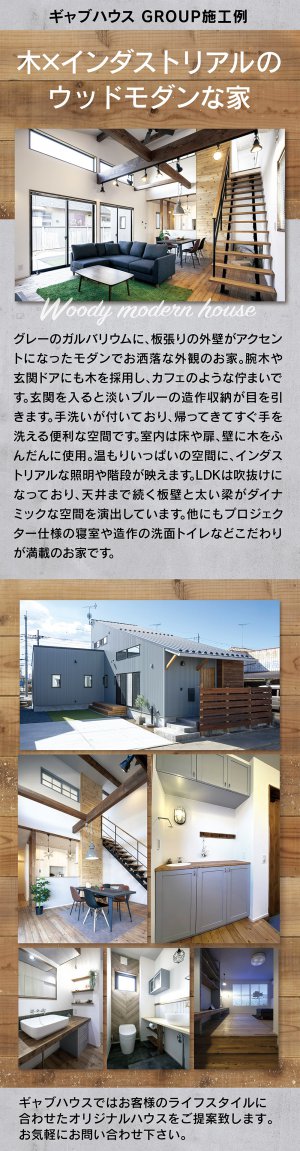 自然素材をなるべく使ったオーダーメイドの家づくりを心掛けています。光熱費を抑える為に断熱性能にもこだわっています。本物の素材で手づくりのキッチン・造作洗面など、オリジナルの空間もご提供しています。新築(注文住宅)・リフォーム・リノベーションのことは、お気軽にご相談下さい。島根県で住宅を建てるなら、島根県浜田市のギャブハウス浜田にお任せ下さい。