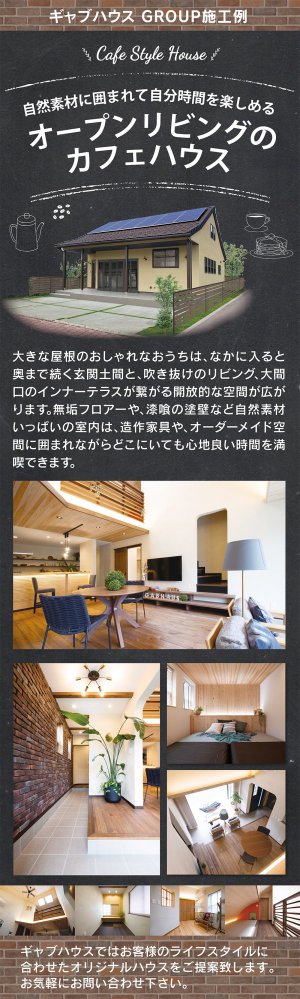 自然素材をなるべく使ったオーダーメイドの家づくりを心掛けています。光熱費を抑える為に断熱性能にもこだわっています。本物の素材で手づくりのキッチン・造作洗面など、オリジナルの空間もご提供しています。新築(注文住宅)・リフォーム・リノベーションのことは、お気軽にご相談下さい。島根県で住宅を建てるなら、島根県浜田市のギャブハウス浜田にお任せ下さい。