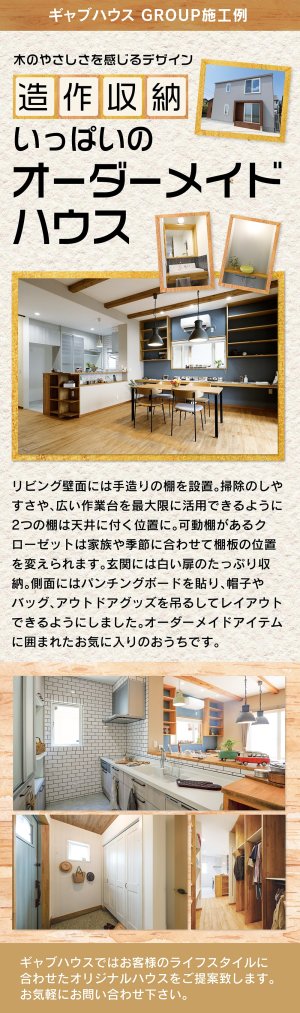 自然素材をなるべく使ったオーダーメイドの家づくりを心掛けています。光熱費を抑える為に断熱性能にもこだわっています。本物の素材で手づくりのキッチン・造作洗面など、オリジナルの空間もご提供しています。新築(注文住宅)・リフォーム・リノベーションのことは、お気軽にご相談下さい。島根県で住宅を建てるなら、島根県浜田市のギャブハウス浜田にお任せ下さい。